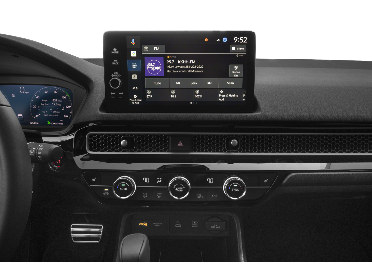 - Radio: Bose Premium Sound System -inc: 12 speakers w/subwoofer, 9" color touchscreen, Google built-in (includes 3-years unlimited data plan for in-vehicle apps), Alexa built-in, Bluetooth® HandsFreeLink and streaming audio, HondaLink, HondaLink subscription services, Speed-Sensitive Volume Compensation (SVC), Radio Data System (RDS), wireless Apple CarPlay and Android Auto compatibility, Wi-Fi hotspot capability, USB-C 3.0A smartphone/audio interface and HD Radio