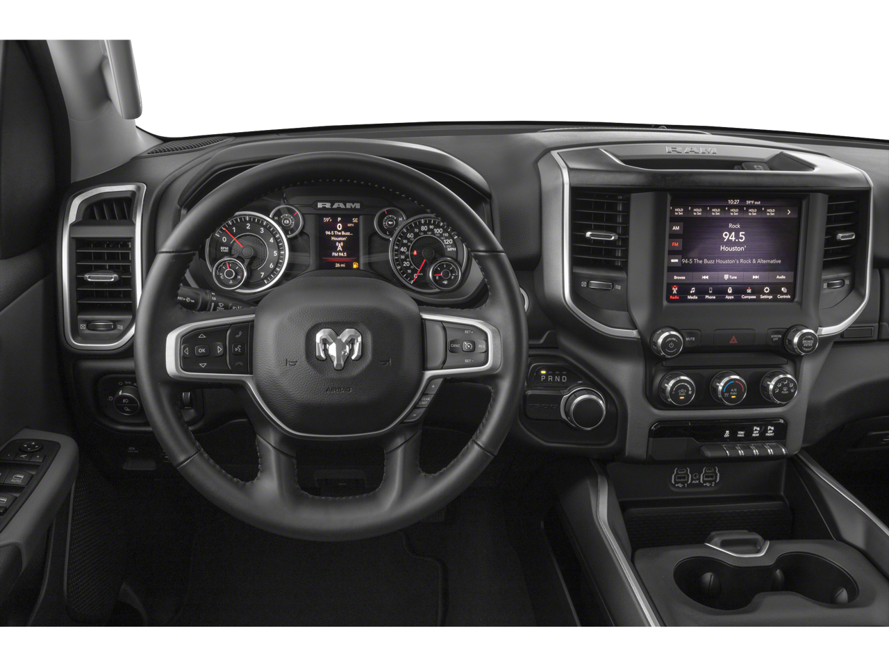 Quick Order Package 23Z Big Horn/Lone Star: Steering Wheel Mounted Audio Controls. Big Horn Level 1 Equipment Group: Uconnect 4 Radio with 8.4" Display; SiriusXM Satellite Radio; Rear Window Defroster; Rear View Auto Dim Mirror; Power Adjustable Pedals; Rear Power Sliding Window; Rear Dome with On/off Switch Lamp; Glove Box Lamp; Power 4-Way Driver Lumbar Adjust; Power 8-Way Driver Seat; Universal Garage Door Opener; Cluster 3.5" TFT Color Display; Foam Bottle Insert (door Trim Panel); Single Disc Remote CD Player; Class IV Receiver Hitch; Power Heated Fold Away Mirrors; Sun Visors with Illuminated Vanity Mirrors; Big Horn Instrument Panel Badge. 20" X 9" Aluminum Chrome Clad Wheels. Deluxe Cloth Bucket Seats. Single Disc Remote CD Player. Maximum Steel Metallic CC. **Equipment listed is based on original vehicle build and subject to change. Please confirm the accuracy of the included equipment by calling the dealer prior to purchase.**